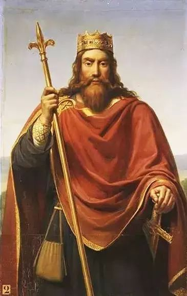 克洛维一世画像 他的权杖顶端雕刻着金百合花图案