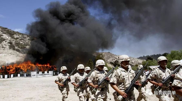 (墨西哥军方在销毁毒品)