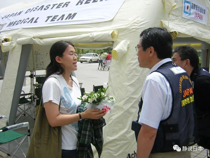 现在担任日本国际协力机构中国事务所所长代理的周妍女士回忆说,当时自己和日本医疗队一起赶到四川。医疗队一直工作到6月份要结束回国时,有一天,一位小女孩在妈妈的陪伴下,来到了帐篷前,怯生生地来到了正在工作的佐藤医生面前。鼓足勇气伸出小手紧紧地握住了佐藤医生的大手,并用英语和日语大声说:“Thank you!ありがとう!”这个非常稚嫩的声音,在我们听来,应该是日中未来相互理解相互信赖的至福之音。我们知道,此时,有一颗中日友好的希望种子,已在这个红衣女孩的心灵里播下。
