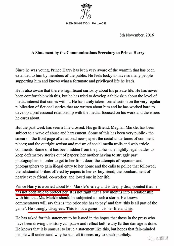 早在2016年,哈里王子同梅根的恋情曝光之后,哈里王子就通过肯辛顿宫,郑重地告诫媒体,希望他们不要去打扰梅根家庭的正常生活。