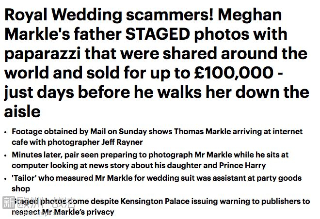 原来,他也不是省油的灯。。。此前他的低调形象都是经营出来的人设,为的就是激发吃瓜群众对他的好奇心。说起来这件事也是靠媒体们的火眼金睛才发现的。自从哈里和梅根订婚以来,梅根的爸爸因为实在低调,媒体想方设法地要去挖他的背景资料都很难。可是最近一段时间关于梅根父亲的报道却犹如雨后春笋般冒出来,全是狗仔成功偷*拍到他的生活照,哪怕英国王室都发布声明说希望大家不要打扰梅根家人的生活,这些报道依然层出不穷。明明以前都拍不到的照片,现在为什么大量出现在网上呢?有些媒体觉得事有蹊跷,就去了梅根爸爸的居住地实地调查。结果他们在一家咖啡网吧的监控里发现了梅根爸爸和所谓的狗仔一起走进网吧,狗仔们先去桥位置摆相机,梅根爸爸去付钱上网。