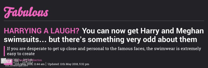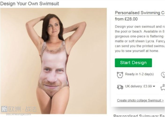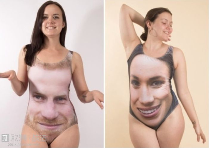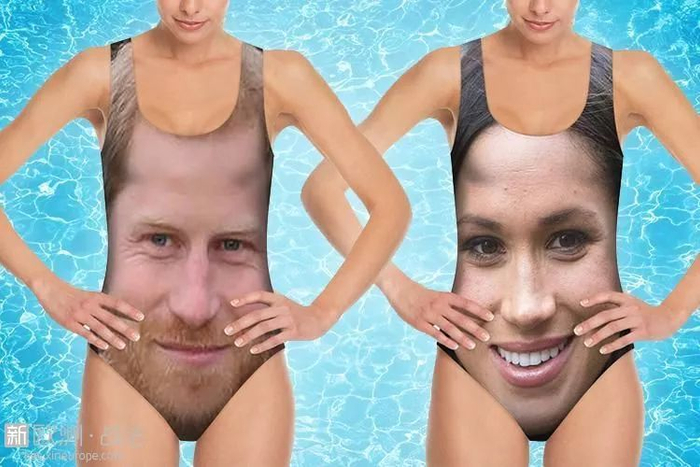 英国人翘首期盼是一方面,另一方面许多无良商家也看准了这个商机,想尽一切手段要蹭这个热点。最近英国有一家泳衣公司擅自推出了两款以哈里王子和梅根的大头照为图案的泳衣