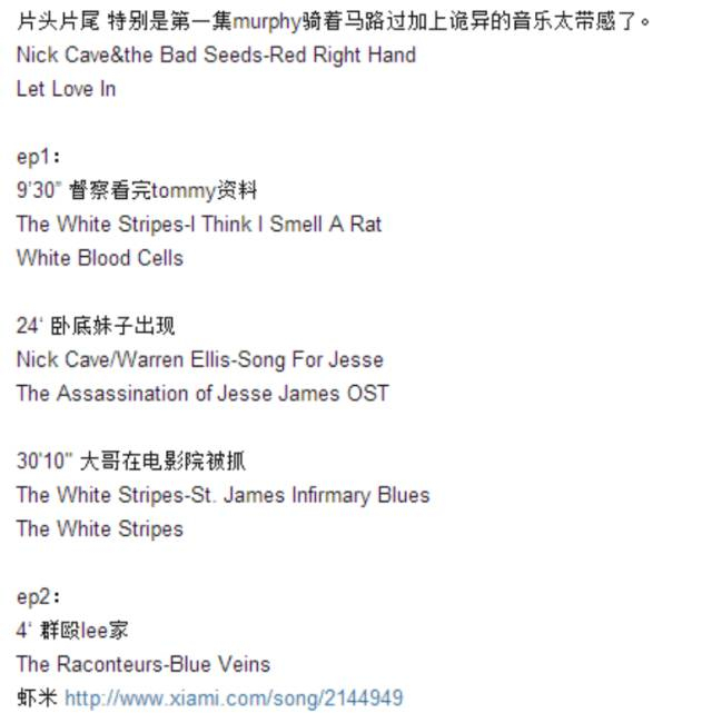 另外,这部剧的配乐也是一大亮点,剧组绝对卧底了NickCave和白带的脑残粉啊!20世纪末21世纪初的独立摇滚,满满的复古调又带点诡异,配上画面biger突破天际!