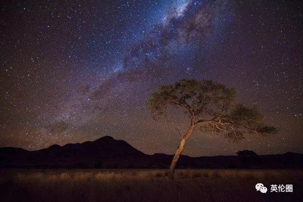 被评为世界最美星空之一的纳米比亚沙漠星空,夜空中繁星点点,星罗棋布,旱季常能看到清晰的银河。