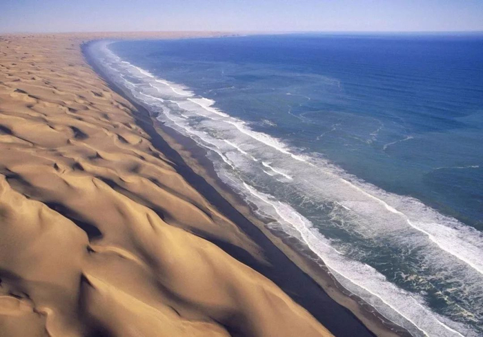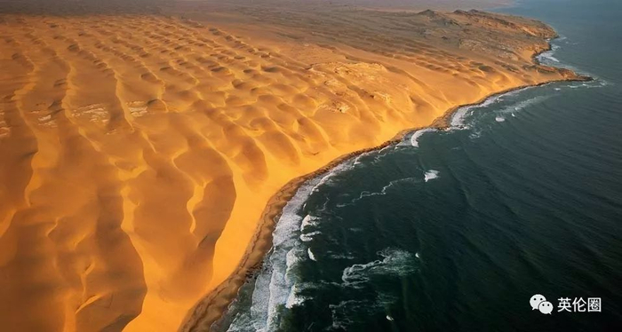 在非洲纳米比亚的纳米布沙漠和大西洋冷水域之间,有一大片褶痕斑驳的金色沙海,一直由海岸向内陆延伸。