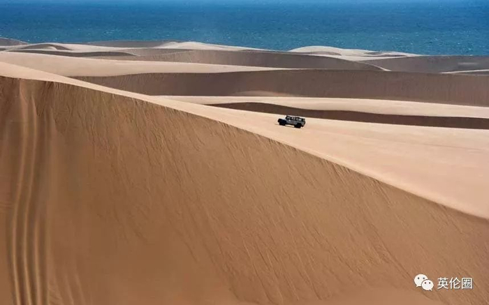 葡萄牙海员把纳米比亚这条绵延的海岸线称为“骷髅海岸”,黄色的沙与蓝色的海交织在一起,形成了超壮阔的景象。