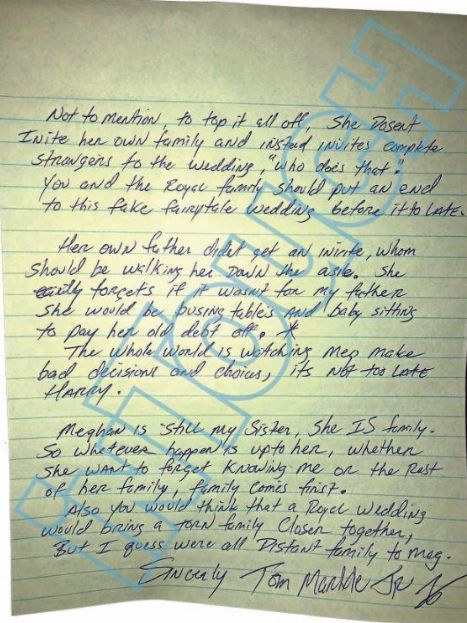 Thomas Jr之前在八卦网站上公开了一封给哈里王子手写信,将梅根好好“踩”了一遍。