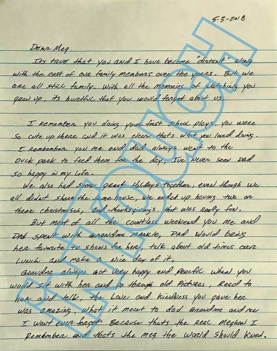 信中说自己和梅根虽然关系很淡,但起码还是一家人。(感觉字迹都变得工整了很多呢)
