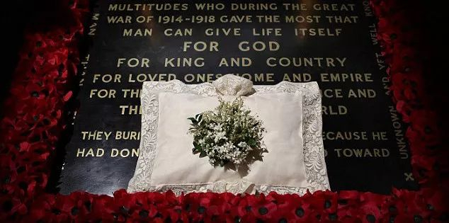 在伊丽莎白王后之后,王室婚礼便继承了这一礼节,王室新娘会在离开教堂时将捧花放置在无名士兵的墓冢上,以此表达对阵亡将士的敬意。