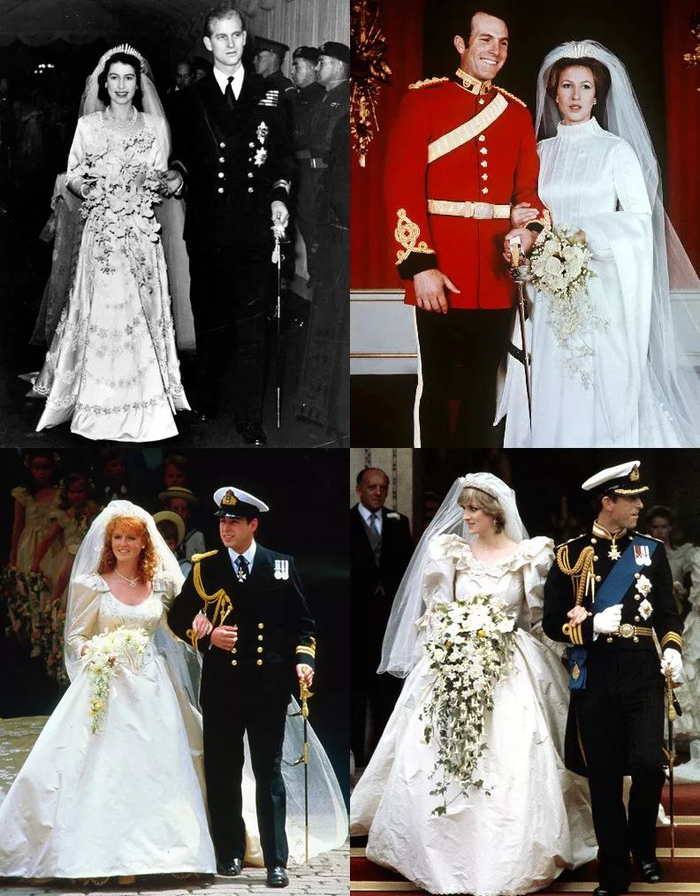 其实,“军装+白婚纱”已经是英国王室长达一百多年的婚礼标配,回顾过去几场王室婚礼,从英女王伊丽莎白二世与菲利普亲王,到查尔斯王子与戴安娜王妃,无一例外,都是这个搭配~