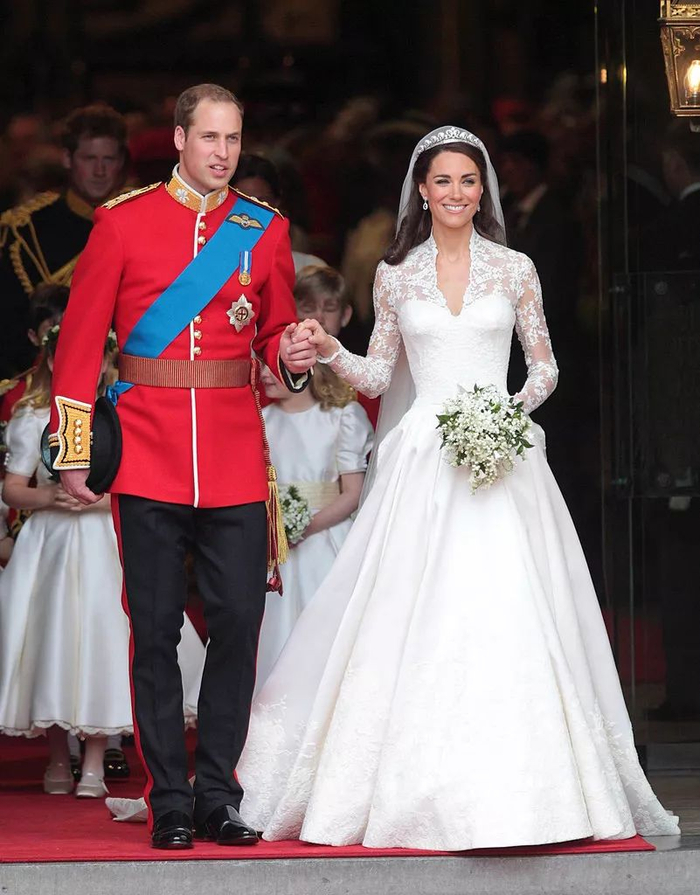 看过威廉王子婚礼的童鞋也许不会忘记,王子穿着一身猩红色爱尔兰卫队制服帅气亮相,凯特王妃用一袭纯白色蕾丝婚纱惊艳全场~