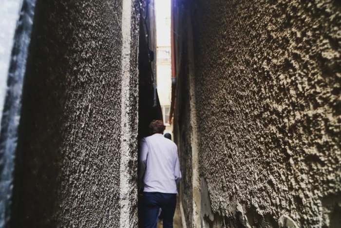 于是,我们跟着阿米尔,在巴拉塔(Balata),在约旦河西岸最大的巴勒斯坦难民营中开始了一场时常约十分钟的“穿行”之旅。除了主干道、市场街(Market Street)是一条十个人可以基本并排行走的商业街以外,整个难民营的住宅区构造都格外的狭窄,可以说平均宽度是老北京弄堂的二分之一。阿米尔开玩笑地说,每次来这里他都可以检验一下自己最近有没有吃胖。