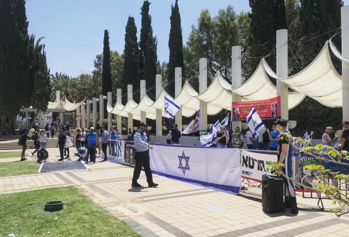 上午在学校做完了民族主义与族群研讨课的课程报告,出了特拉维夫大学的校门,眼望所及:右边是巴勒斯坦国旗,巴勒斯坦年轻人在台阶上高呼。左边以色列年轻人也扎成了一堆,大卫之星的蓝色国旗到处飘扬。