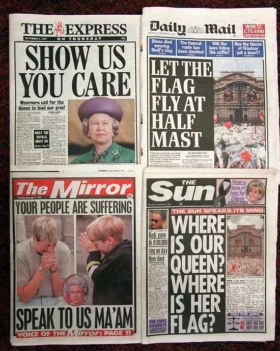 但时代在变,人们对王室的要求也在改变。已经不需要“高高在上”王室的民众愤怒于女王和王室成员的不作为,一时间英国人对王室的厌恶情绪到达了极点,各大英国媒体也连续在头版头条向女王喊话。