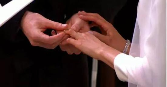 结婚戒指是由女王赐的稀有“威尔斯金”(Welsh Gold) 打造。威尔斯金已于上世纪80年代停止开采,最后的金块落在英国王室手中,每逢有王子大婚,女王便会割爱一些让新人用来订婚或结婚。