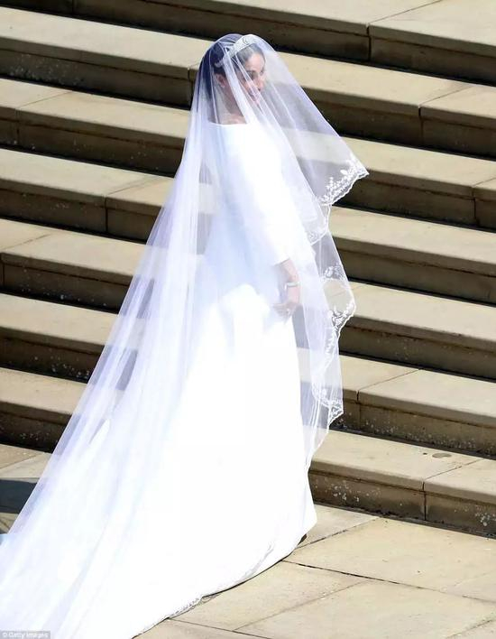 本次婚礼的最大悬念之一,婚纱全貌终于曝光,由Givenchy设计师Clare Waight Keller设计,一字领,非常简约,没有过多的亮片或缀饰。