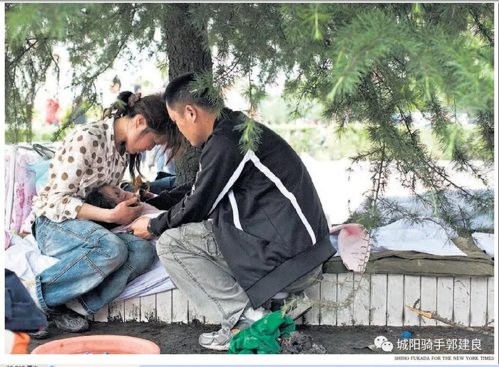 2008.05.15 纽时头条照片是一对夫妇正在为孩子清洗遗容。