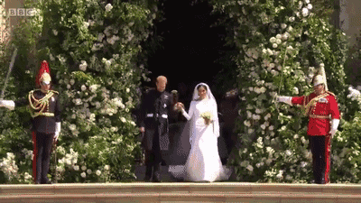 刚出教堂就吻,太着急了吧(gif截取自BBC新闻直播)