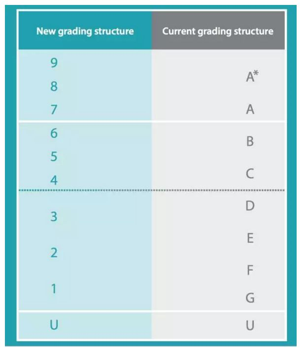 GCSE新旧成绩对照表