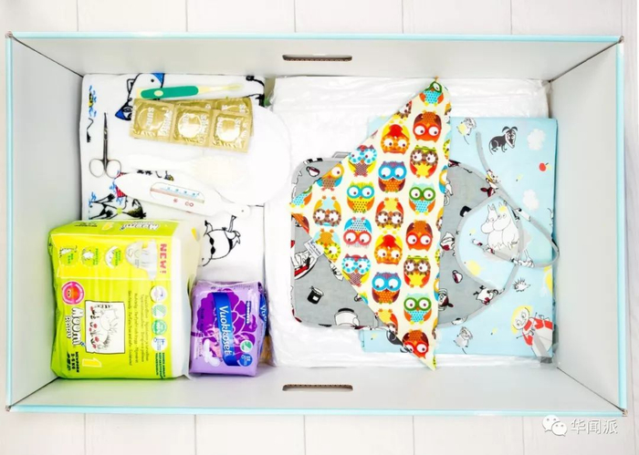 你以为芬兰的父母们一边休产假,一边还有钱拿就是天堂了?No,No,No,这还不是全部,更贴心的是,在过去的80年里,芬兰政府都会给新手父母发一个“宝宝盒子”,里面装了睡袋、床垫、户外装备、洗漱用品、玩具等新生儿必需品。