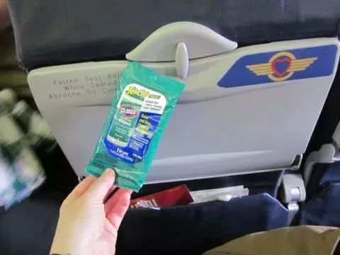 湿巾纸绝对是我们出门旅行的必备佳品,在入座后,只要使用湿纸巾把座椅扶手,小桌板等,其他乘客常常接触的地方擦一下,就好啦!