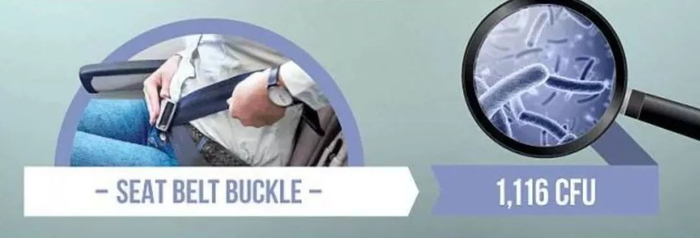 其实这个结果并不令人意外,安全带扣早已被触摸了成千上万次,但其实很少会被清洗或更换。