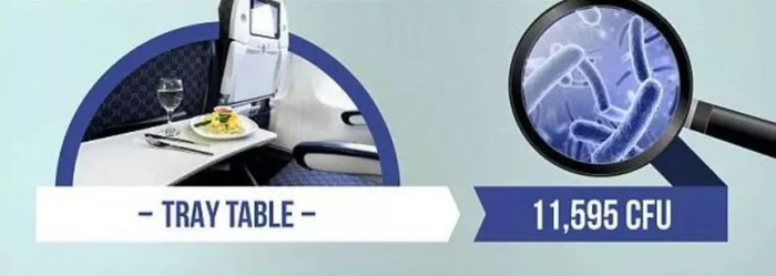 此次检测结果显示,飞机上第二“脏”的地方就是折叠小桌板!