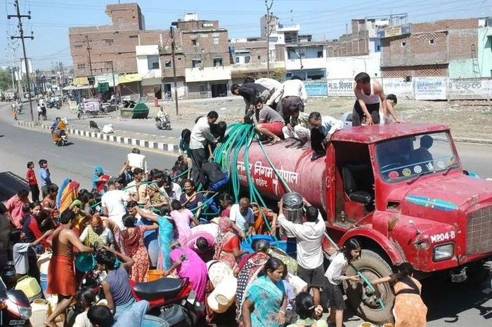 印度各地现已出现不同程度的缺水情况,比如湖泊众多的班加罗尔,约有超过半数的居民用水不得不依赖井水和运水车。而且,由于连年干旱,班加罗尔的地下水水位下降严重,有当地人反映,目前打井至地下约450米深处,依然见不到水。