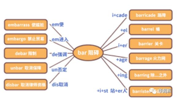 同样讲字词的延展,下图是高中英语老师敲着黑板强调过的词根词缀记忆法。