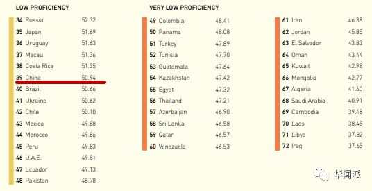 在2016年的EF全球英语学习报告中,中国的英语语言能力排在“low”这个级别,仅优于以中亚和北非国家为主的”very low”。