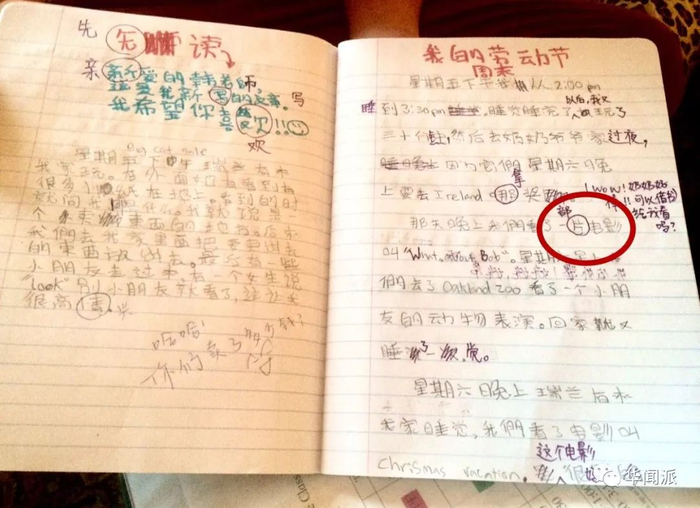 ▲外国小孩的汉语作业中,还出现了“一片电影”