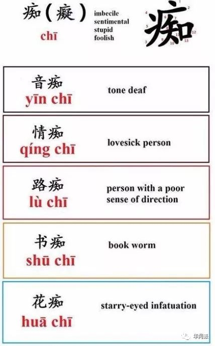 英国人学习用汉字组词,他们把“情痴”翻译为“lovesick person”(相思成疾的人),把花痴翻译为“starry-eyed infatuation”(星星眼般的迷恋)。