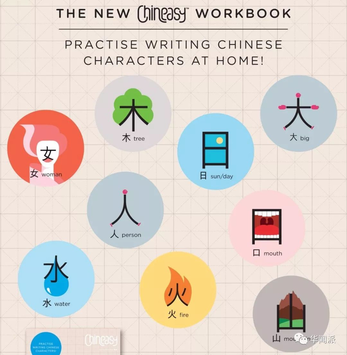 英国人学习象形字,木、水、火、土都可以对应到实际生活中。