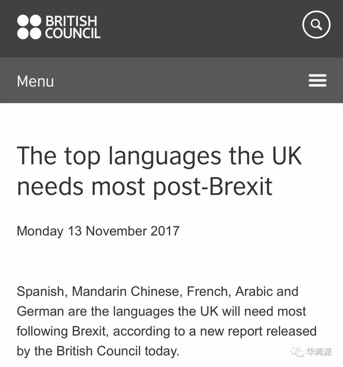 那么,哪种语言是“脱欧”后的英国最需要的?去年底,英国文化委员会公布了答案——