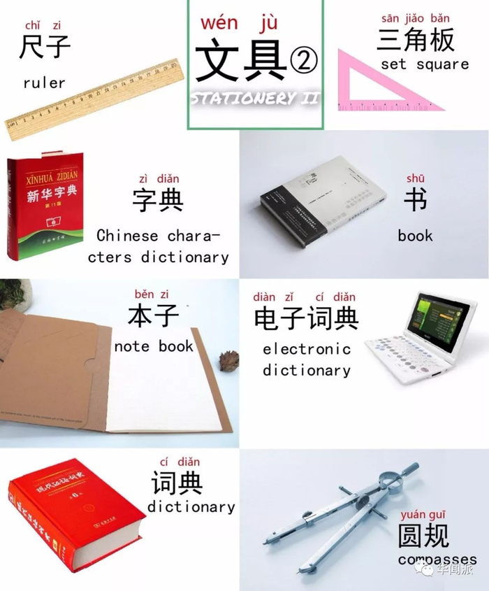 说完了学习方法,让我们把目光转到学习用具。下图是有英文注释的中英双语挂图,用于英国人学习汉语。