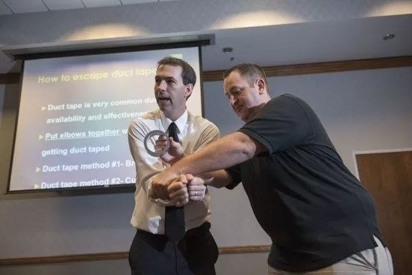 美国中情局前特工兼电视明星杰森·汉森常常向公众演示逃命技巧,其中一个必备品就是“暗器”,包括用于捆绑的扎带、开锁的发夹和战术笔等。