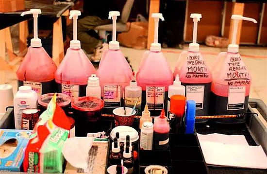 肉块:一般用乳胶做假的,用生肉需谨慎。《活死人之夜》用的是涂满巧克力酱的烤火腿——结果把“丧尸”们都吃得恶心反胃、小脸煞白。乔治·罗梅罗开玩笑说,早知这样就不费力给他们化妆了。