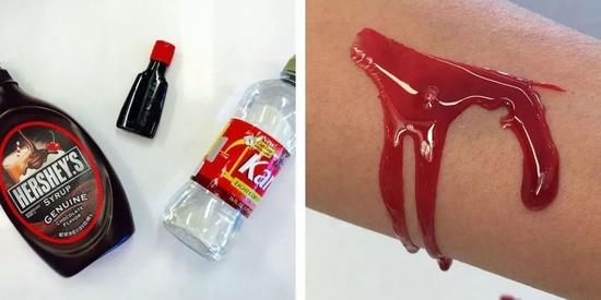 血袋:向新人推荐便宜又好用的注射器,最好买兽医款。把假血装进去,用输液管连到打算喷血的部位,比如前面提到的假伤口。至于血么?糖浆、果酱、巧克力酱最常用。
