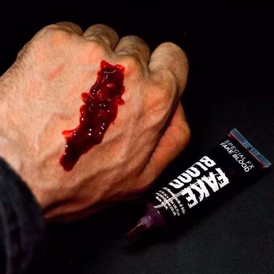 血凝胶:一团血红色的胶体,配合油彩和血袋能很方便做成“喷黑血的腐败伤口”。