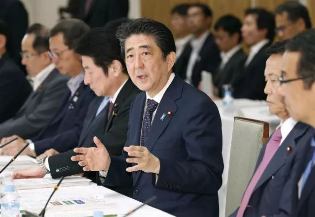 5月30日,日本首相安倍晋三在官邸会议,强调吸收具有“即战力”外国劳动力的重要性。共同社照片