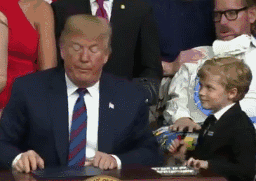 特朗普在签署法案时居然被一名8岁小男孩抢了风头,而特朗普看起来竟让还挺高兴的!