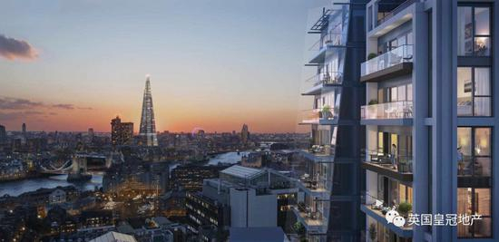 从这里往西步行15分钟便可到达伦敦金融城,每天有超过40万人在此工作,各大投行总部、咨询公司、世界顶尖的律所和投资机构都设立于此。项目二期在开售半年内火速售罄,年涨幅高达8%-10%。项目三期刚刚发售,方正好户型可选,精装修,泰晤士河景,产权967年,价格80万英镑起,首付10%。