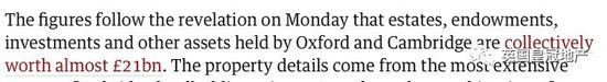 牛津剑桥这两所大学在全英范围内居然拥有价值超过35亿英镑的不动产,远超自称是“英国最大私有地主”的英格兰教廷。