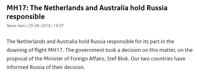 2018年5月24日,五国联合调查组(JIT)再次召开阶段性新闻发布会。在会上,除了已被确认过多次的事件经过,调查组还公布了事发前后负责运输和操作防空导弹系统的俄军部队番号——俄罗斯驻库尔斯克部队第53防空旅。第二天,独立新闻调查机构Bellingcat进一步将指控具体到了个人。至此,对MH17坠机事件本身的调查已近尾声,结论并不出人意料:MH17上的近三百人死于俄方的“山毛榉”地对空导弹。