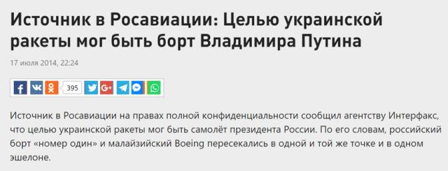 △ 7月17日当天俄新社新闻:“航空局消息人士:乌克兰导弹的目标可能是普京专机”