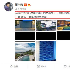 目前,2套房产分别价值600余万美元和300余万美元,合计在900万美元左右。