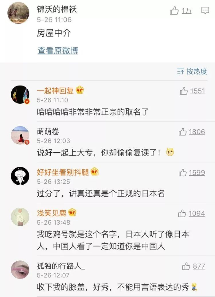 前段时间有一位微博网友(@纯良大叔)关于日本名的帖子火了。