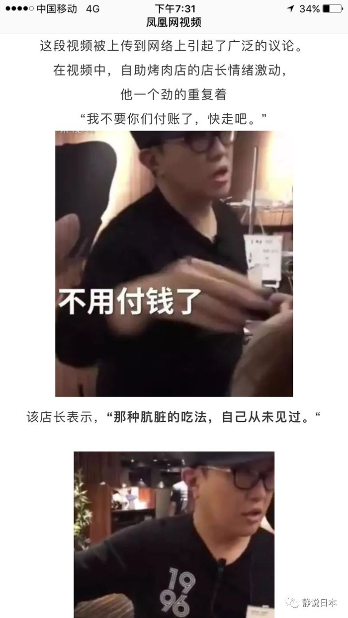 我略作了解,事情的经过大致如此。多了一个说法是:两位中国游客称,并非自己不文明,而是因为在吃饭时说中国话,引起日本人店长的反感。