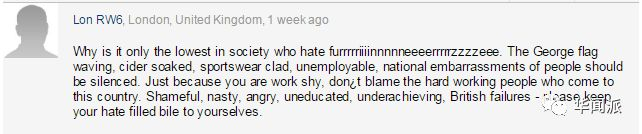 如果说华闻君采访的这些英国人对于外来移民的看法还算客气的话,那么一些英国网友可就没这么客气了。