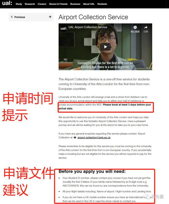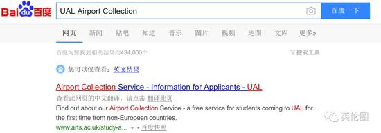 比如圈哥想找找伦敦艺术学院UAL是否有接机服务。在度娘浏览器里搜:UAL Airport Collection